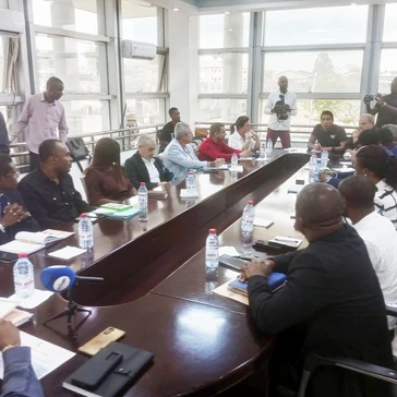 El ministro de Estado de Información, Prensa y Cultura, Gerónimo Osa Osa Ecoro, que preside esta comisión, ha mantenido este jueves una primera reunión con representantes de las empresas interesadas en la sede de Televisión de Guinea Ecuatorial en Malabo.Las productoras que se han presentado son: MBS, OMICRON, DUPLIDATA, GLOBARK AFRIQUE y THE WOLF BROADCAST GUINEA S.L. Todas desean encargarse de la cobertura del viaje apostólico que realizará el Papa en el país del 21 al 23 de abril.Durante el encuentro, el Ministro dio la bienvenida a los representantes de las empresas y les deseó una buena estancia en el país. Después, se revisó el plan general preparado por la comisión para organizar la cobertura de las actividades que realizará el Pontífice en la isla de Bioko y en la parte continental de Región Continental de Guinea Ecuatorial.